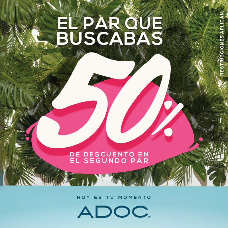 ¡Disfruta cada momento del Verano con ADOC! ???????????? Ven y aprovecha 50% de descuento en tu segundo par. ✌️ *Restricciones aplican. *Válido del 1 de marzo al 2 de abril de 2018.