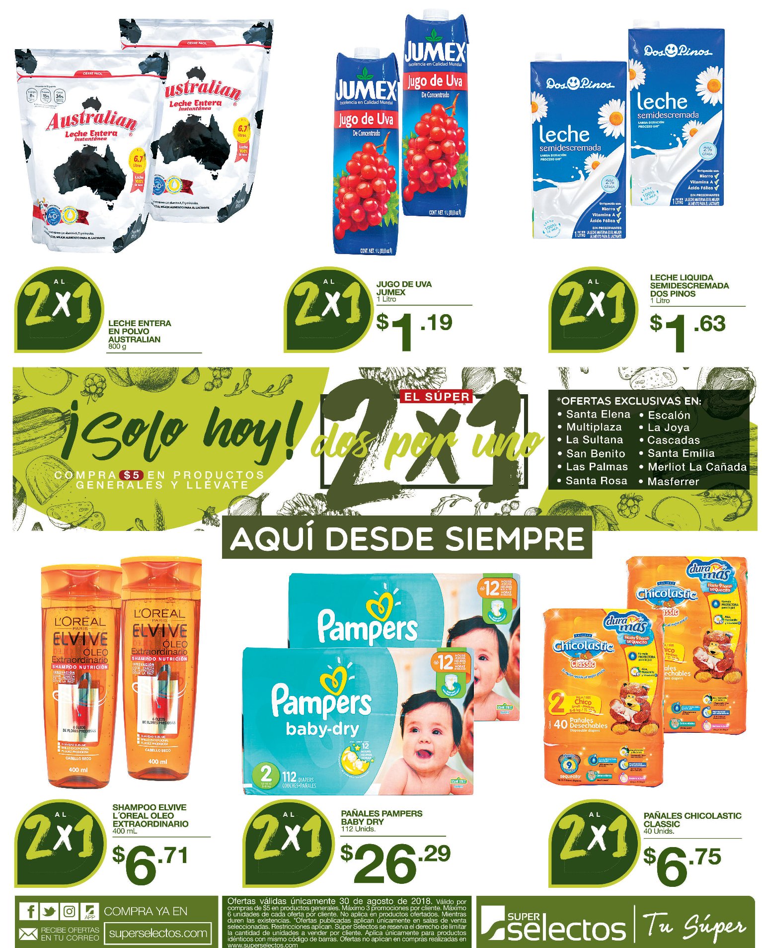 - Fin de Mes agosto 2018 – ofertas 2×1 en super selectos
