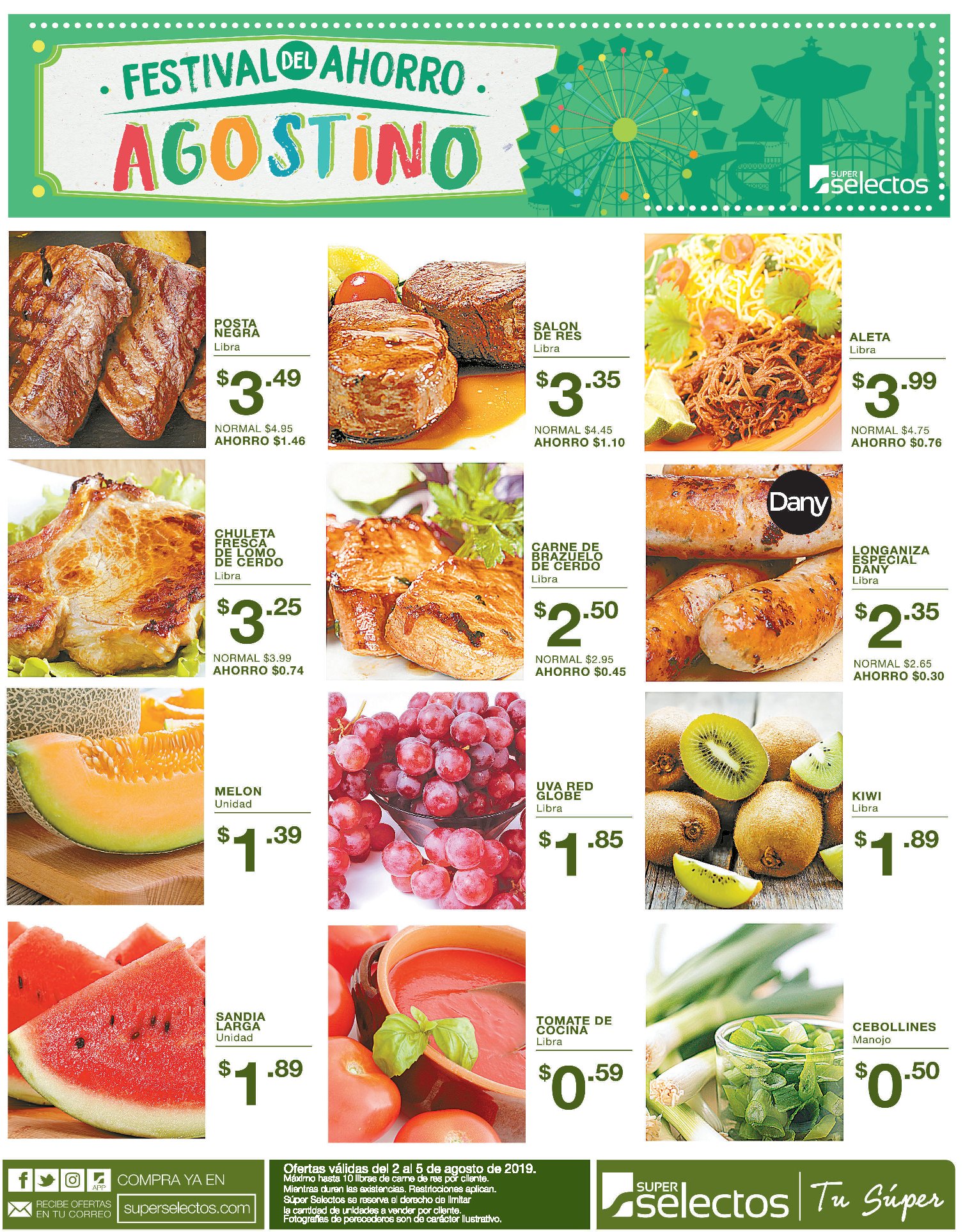 ¡Aprovecha las #MegaOfertas de hoy desde las 4:00 p.m. en todos los Súper Selectos!Ofertas válidas el 2 de agosto de 2019, a partir de las 4:00 p.m. Súper Selectos se reserva el derecho de limitar la cantidad de unidades a vender por cliente. Mientras duren existencias. Restricciones aplican.