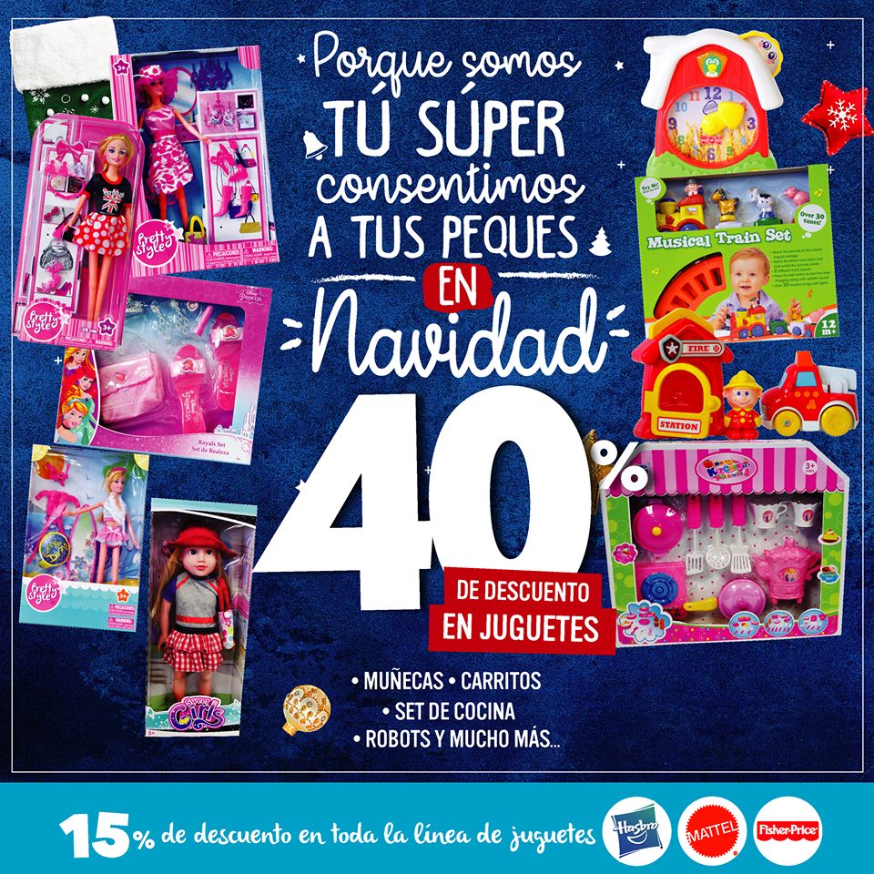 ¡Aprovecha el 40% de descuento en juguetes solo en Súper Selectos el salvador Ofertas válidas del 16 al 22 de diciembre de 2017. Máximo 10 unidades de cada oferta por cliente. Mientras duren las existencias.