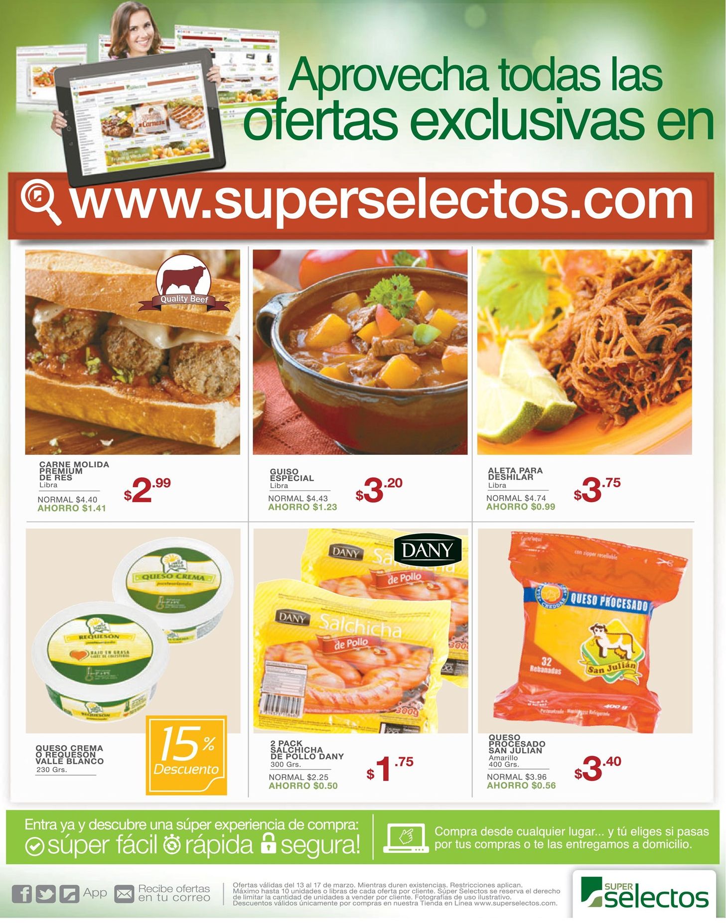 Hol Hola amigos, ya estamos aqui nuevamente justo a tiempo con buena info de promociones y descuentos porque ahora es un Super Viernes fresh una probadita SALE de Verano (13-mar-15). Dentro de los mas destacado 30% OFF en ferreteria VIDRI, REBAJAS en almacenes Siman, Descuentos grandes en estilos seleccionados MD te entiende, DIVESA con descuentos hasta del 50% y sin faltar ofertas para nuestras compras de supermercados: WALMART, SUPER SELECTOS, LA DESPENSA DE DON JUAN.