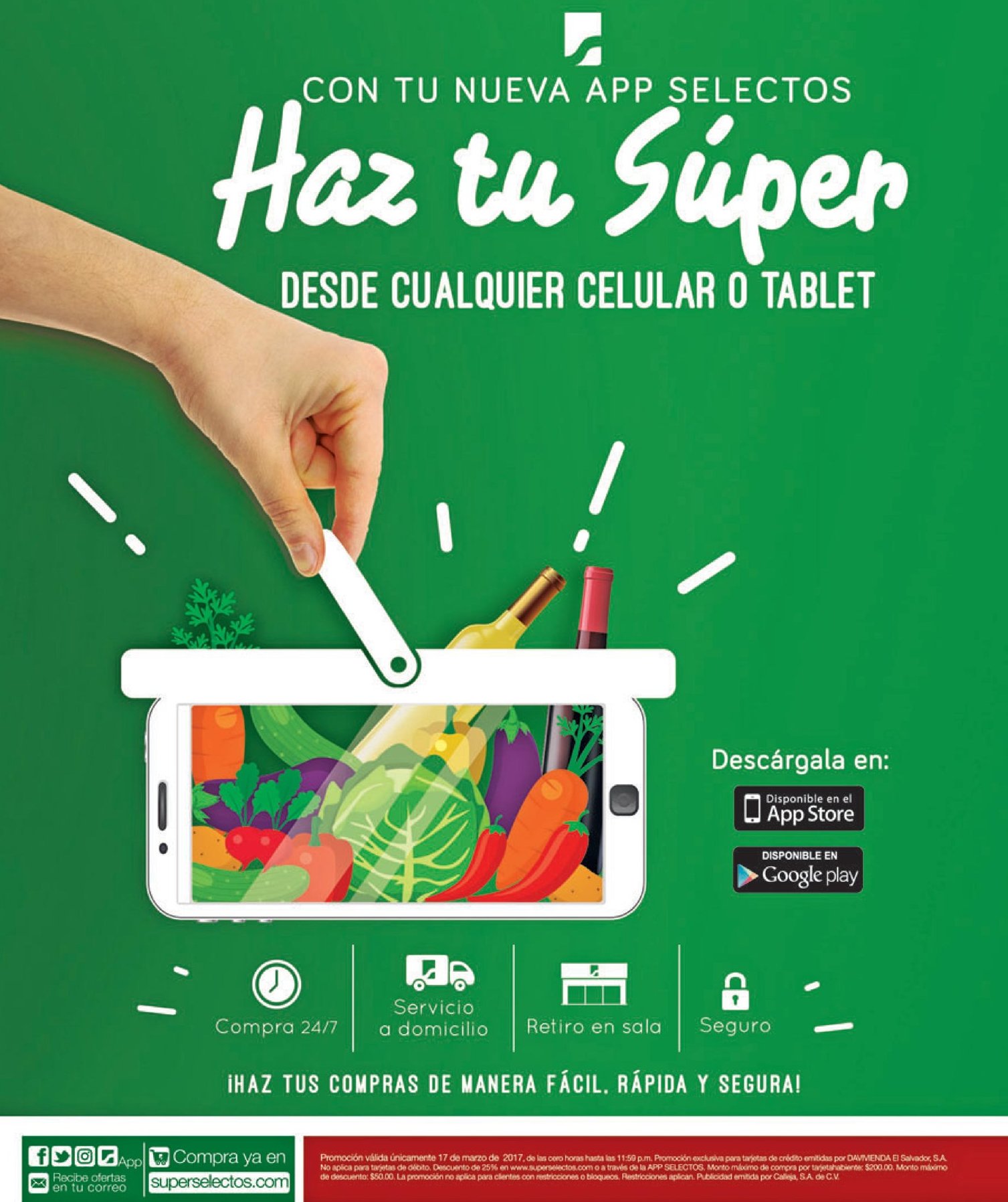 AHORRO a la hora de tomarte tus traguito en la despensa – 17mar17 Compras online SUPERSELECTOS con 25 off con Banco Davivienda Descarga la nueva APP super selectos para comprar desde cualquier tablet o telefono DESCUENTO en tu accesosiors del hogar via superselectos sv Despensa Familiar precios bajos para hoy viernes – 17mar17 jabones y detergentes