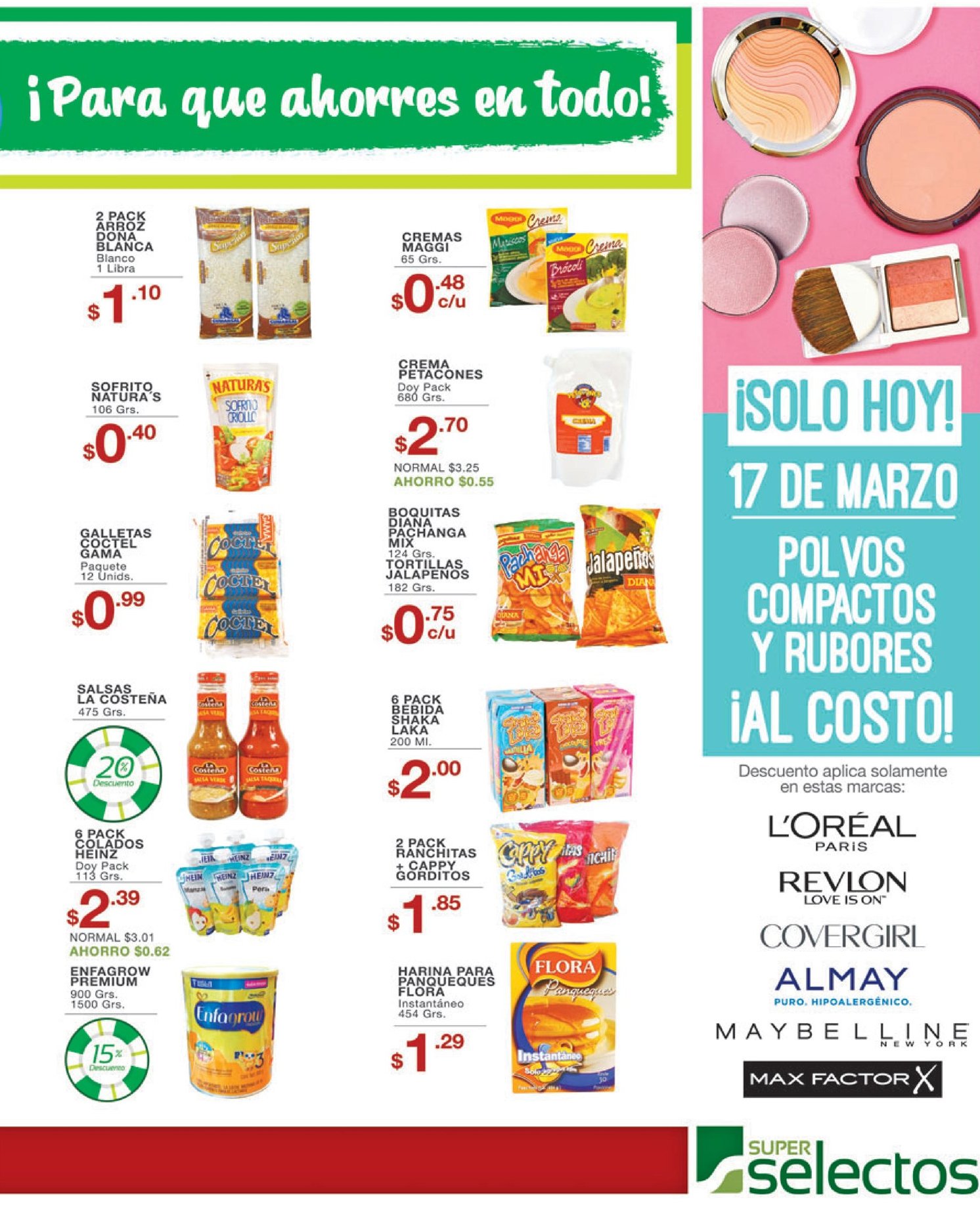 POLVOS y RUBORES al costo hoy viernes super selectos
