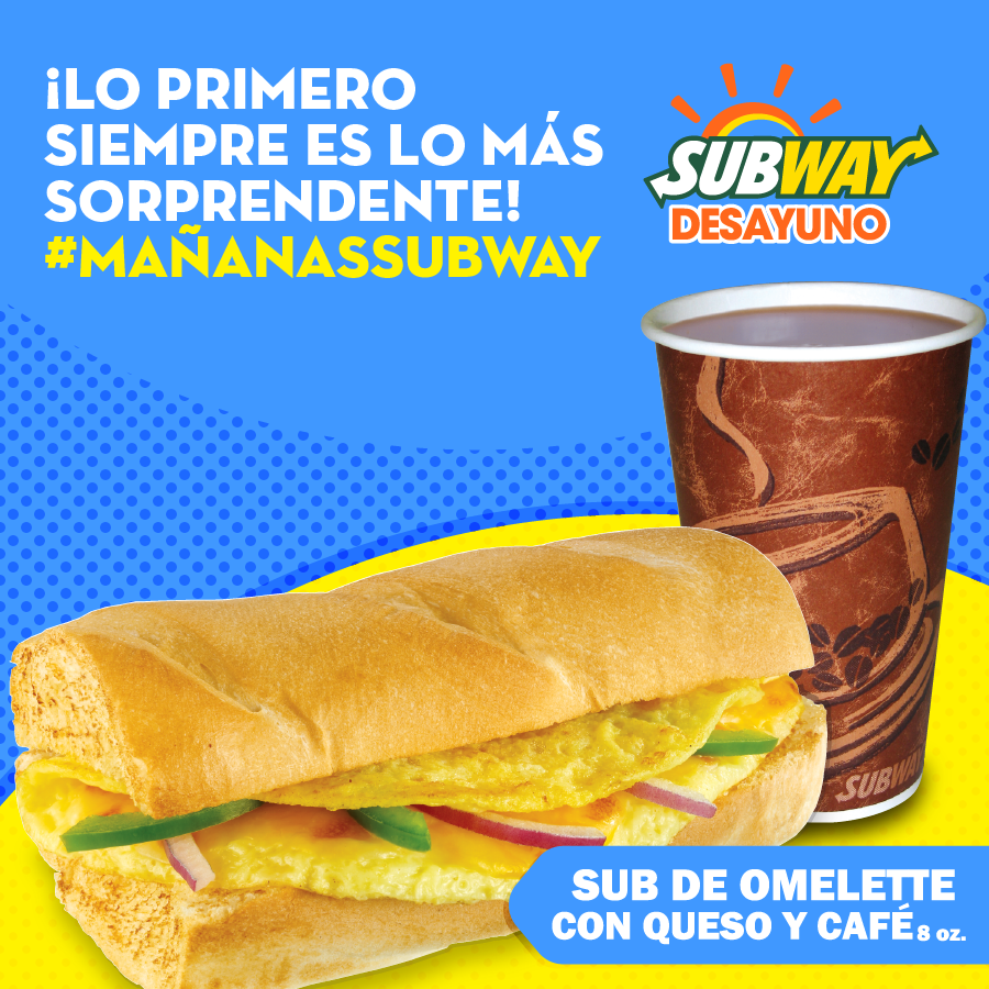 Para desayunar Ya probaste un SUBWAY de jamon queso mas cafe