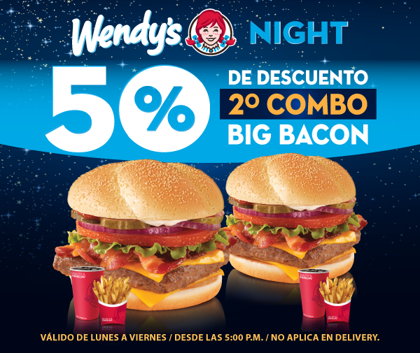 ven a wendys y como tu segudan hamburguesa con 50 OFF