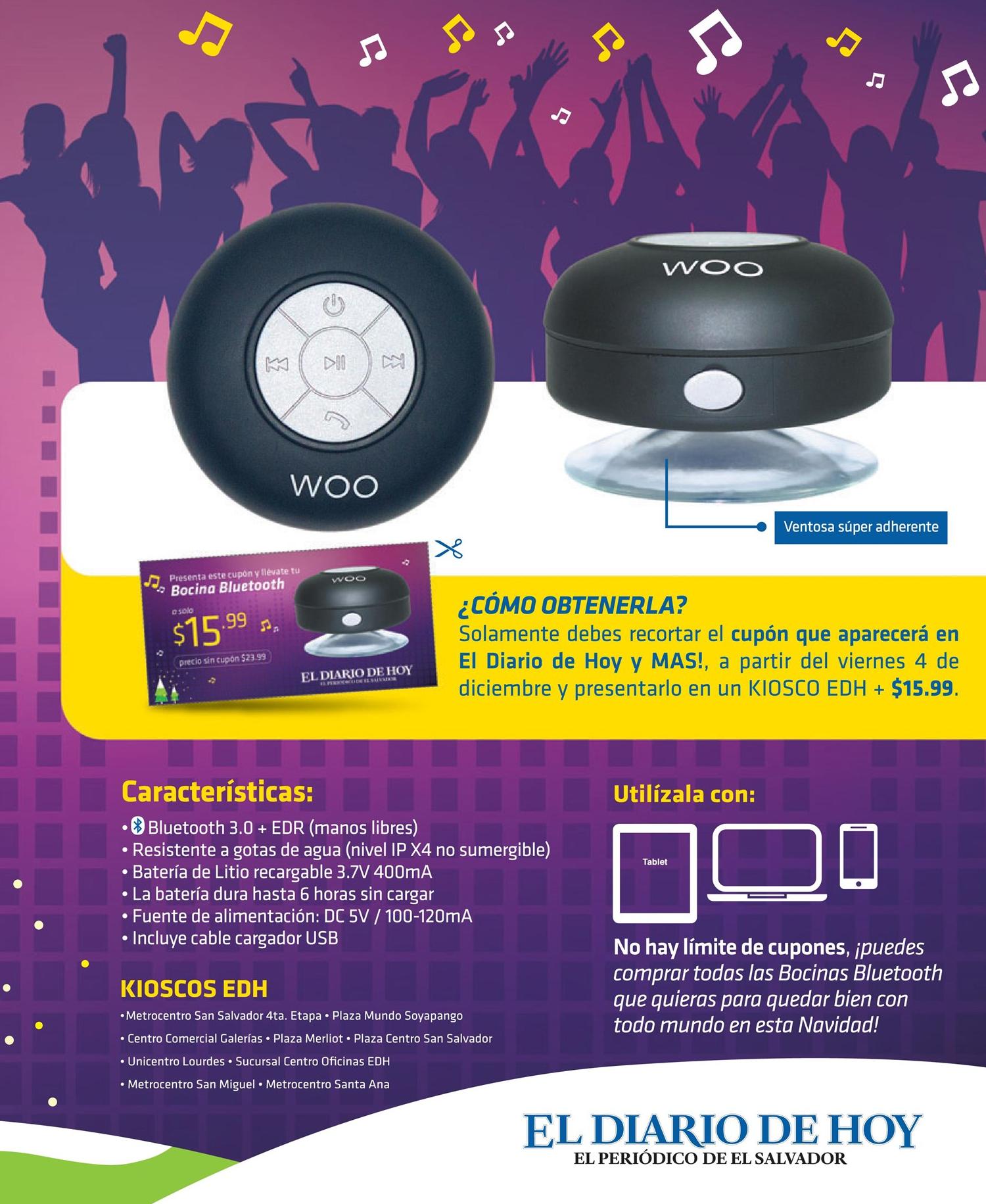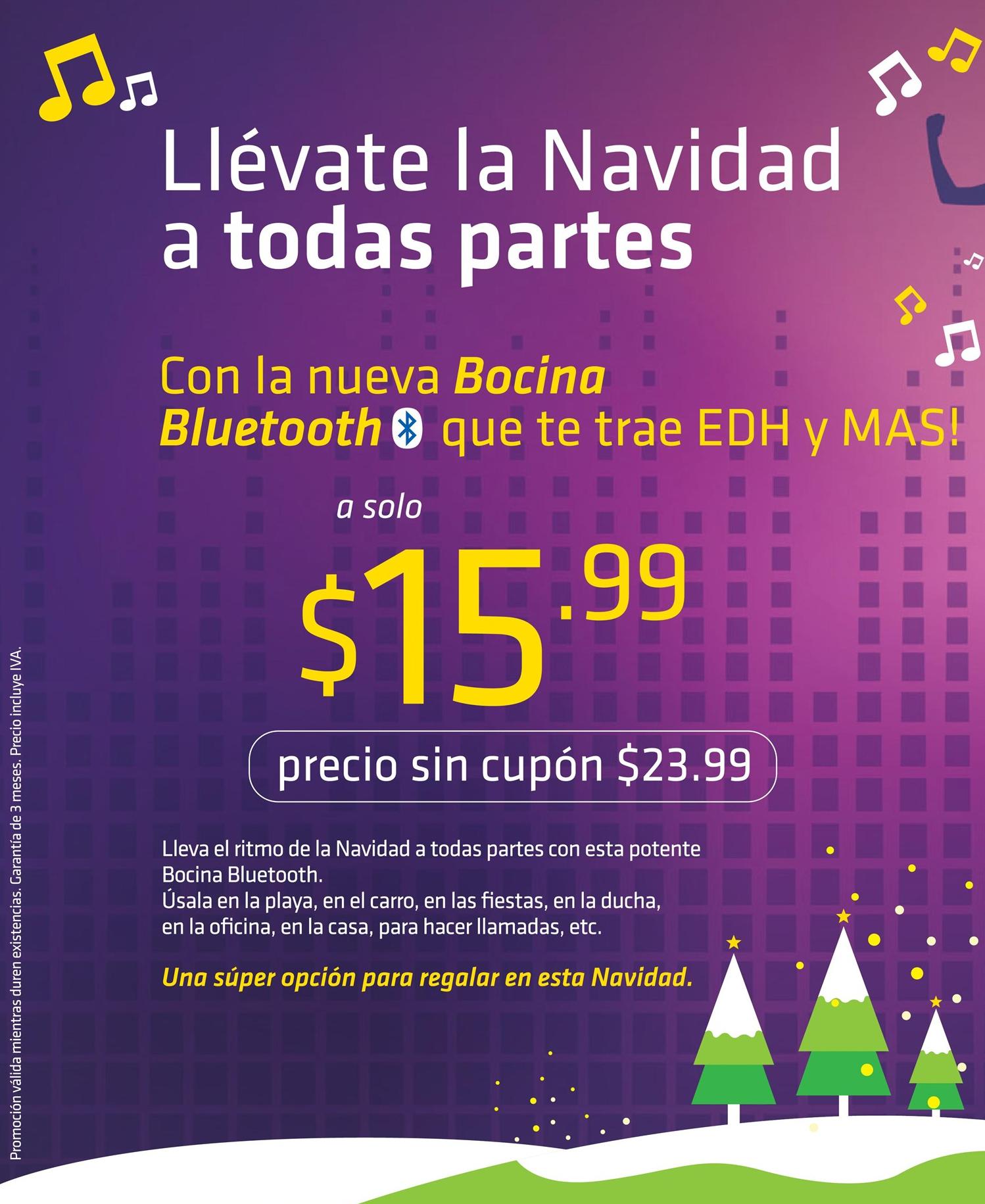 CUPONES para BOCINA portatil bluetooth de EDH y mAS