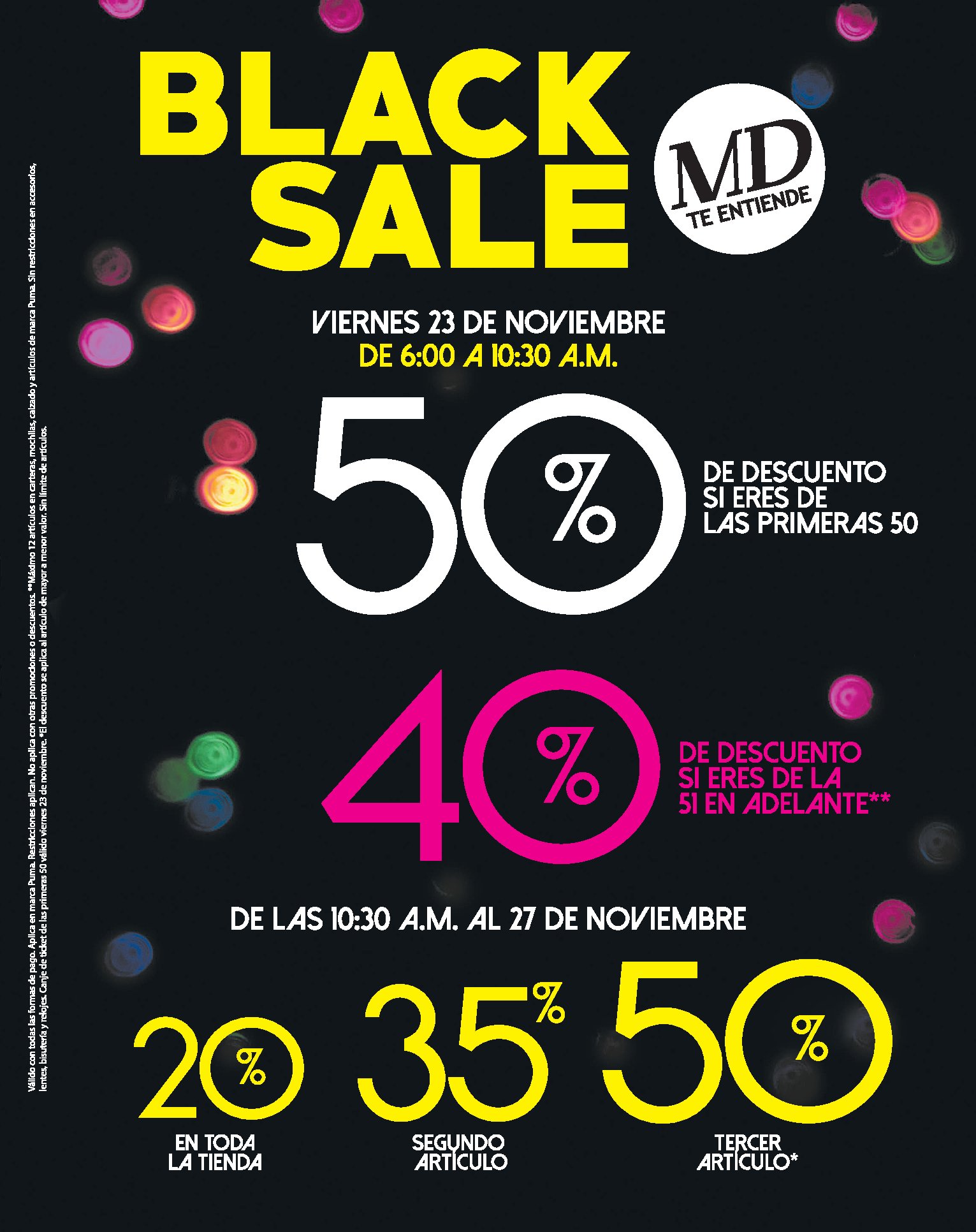 Aprovecha nuestro Black Sale para esta temporada.???????? -Restricciones aplican. -Promoción válida hasta el 27 de noviembre de 2018. -No aplica con otras promociones o descuentos. -El descuento se aplica al artículo de mayor a menor valor. -Aplica con la marca Puma.