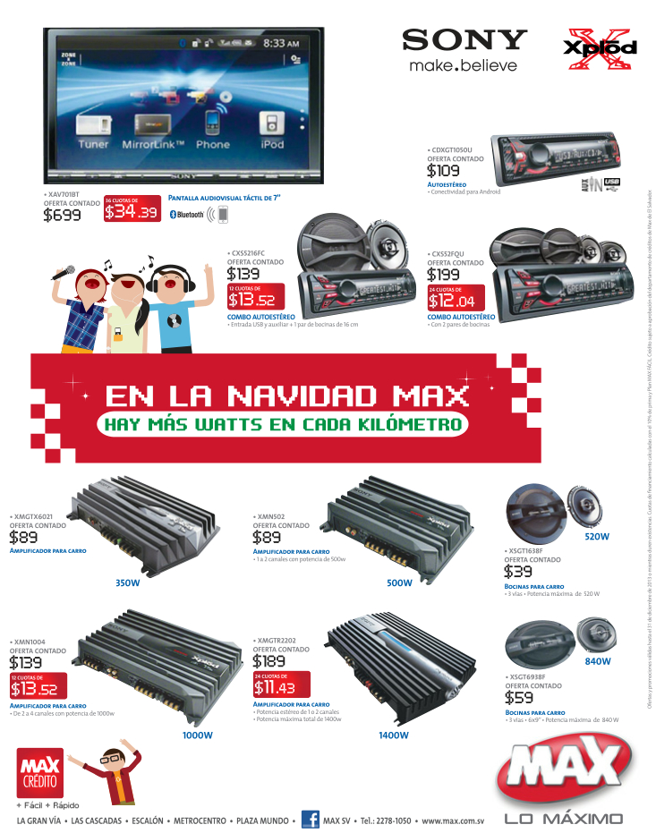 * Stereo car solutions promotions MAX ofertas