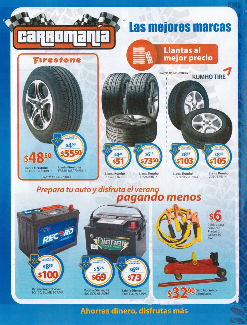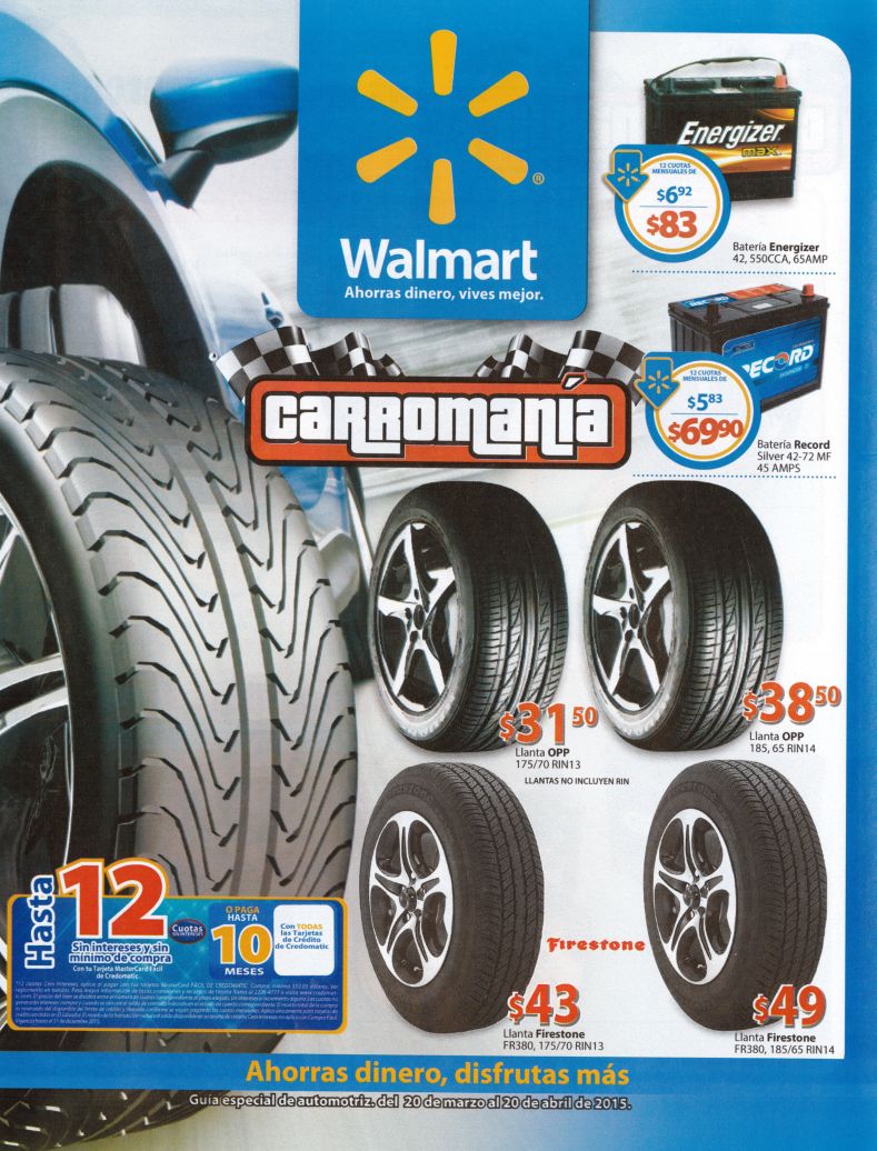 CARROMANIA Guia especial de automotriz para TU automóvil a tono para las vacaciones WALMART. Disfruta de un placentero viajes equipando tu auto con estas grandes promociones gracias WALMART el salvador. Valida del 20 de marzo al 20 de abril de 2015.