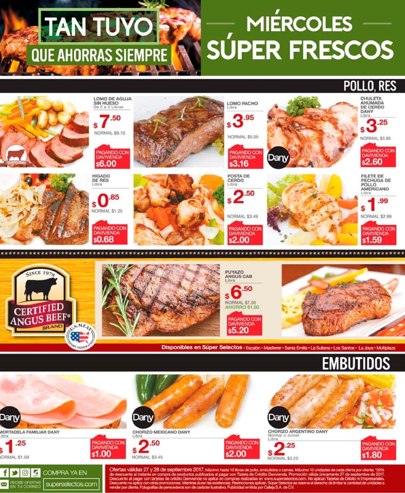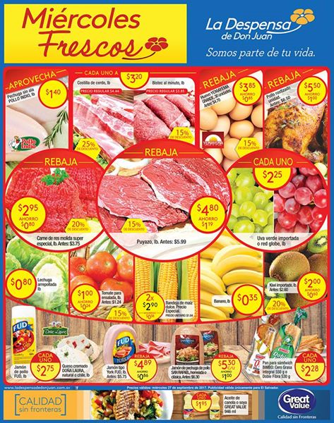 Supermercados y tiendas de La Despensa de Don Juan y SUPER SELECTOS el salvador. Comparte con nosotros tu producto favorito de #MiércolesFrescos. ¡Te esperamos! ???????? *Vigencia únicamente el 27 de septiembre del 2017. COMPARTELO!
