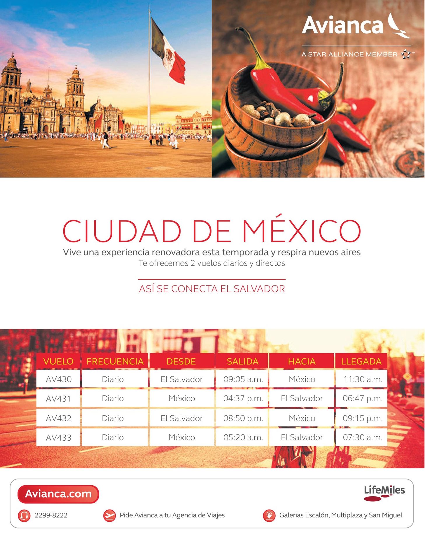 Viajes directos y diarios a mexico y el salvaor