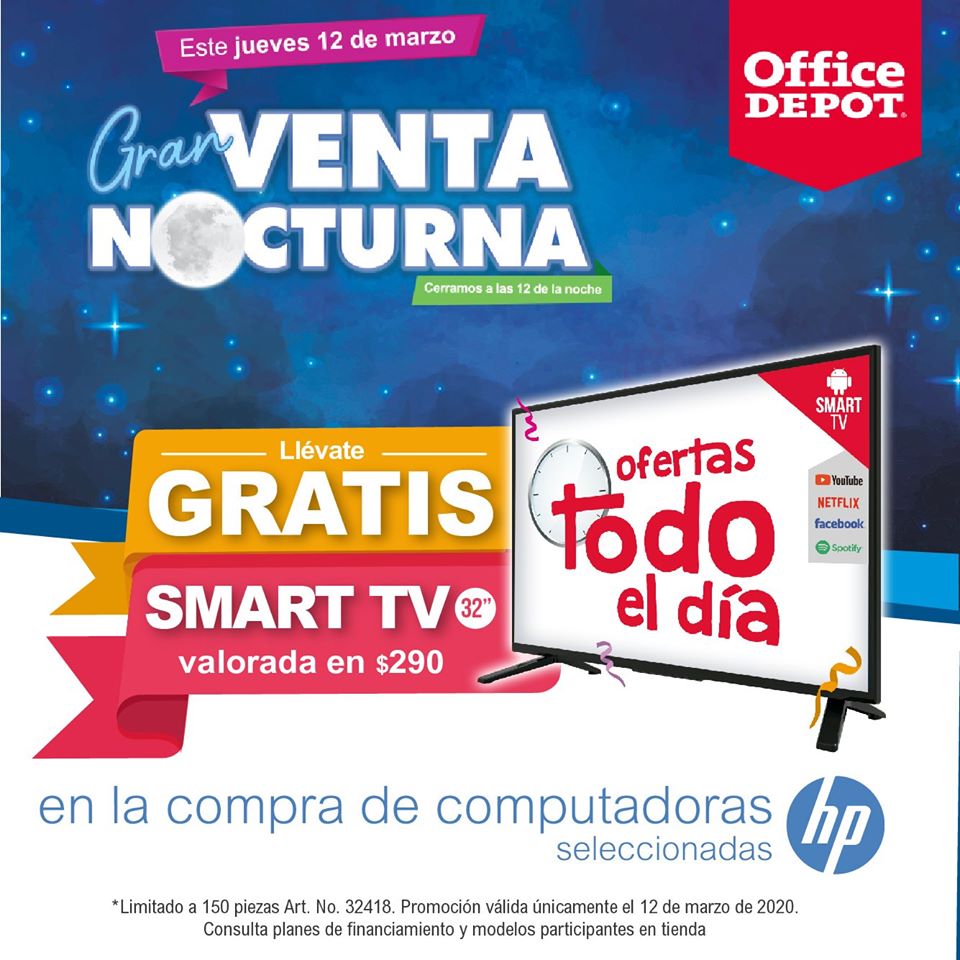 ¡Solo hoy 12 de marzo! Ven a Office Depot en donde encontrarás las mejores promociones y descuentos todo el día en tecnología, muebles y más.Un increíble regalo te espera hoy en nuestra Gran Venta Nocturna, descubre esta y más increíbles ofertas todo el día. ¡Te esperamos!¡No te los puedes perder! Hoy terminan los Tecno Días en Office Depot, ven y conoce todo lo que tenemos para ti.