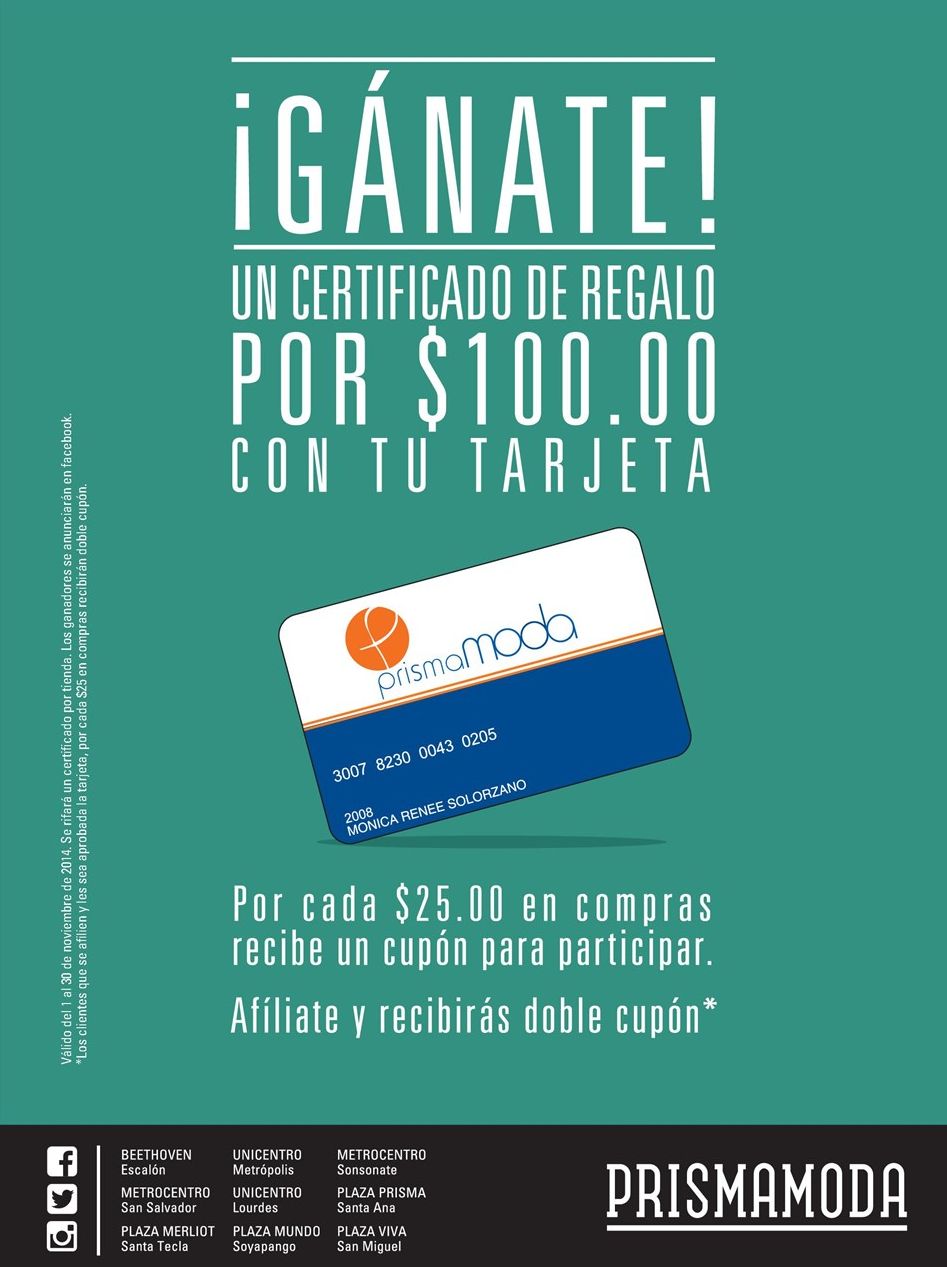 GANATE un certificado de regalo con prisma moda