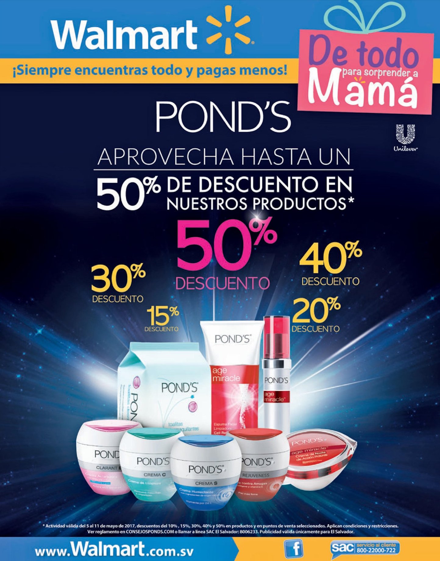 WALMART descuentos Linea de productos PONDS hasta con 50 off. YO ahorro con las super ofertas del selectos – 05may17.