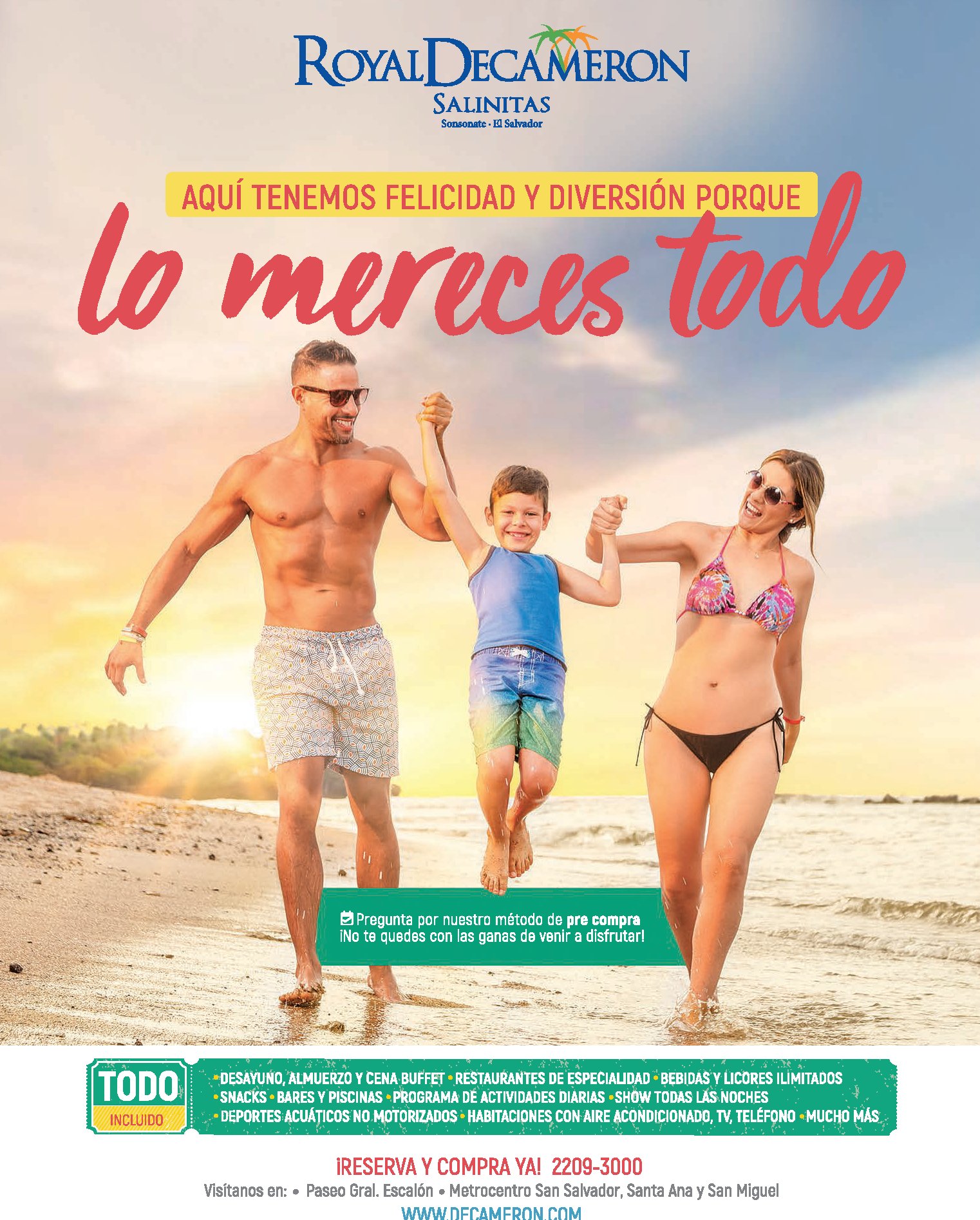 Se acercan las vaaciones de verano 2018 y Para brindarte información de tarifas y beneficios de precompra ingresa a www. decameron .com o lláma desde El Salvador al 2209-3000, desde Guatemala al 2411-9626, desde USA o Canadá al 1 800 481 8369 ó desde Honduras al 800 791 9191 ¡Será un placer atenderte! Promociones ALL INCLUSIVE Enamórate de Salinitas, un atardecer a la vez… ???? Es tan agradable observar el #océano a primera hora de la mañana ????