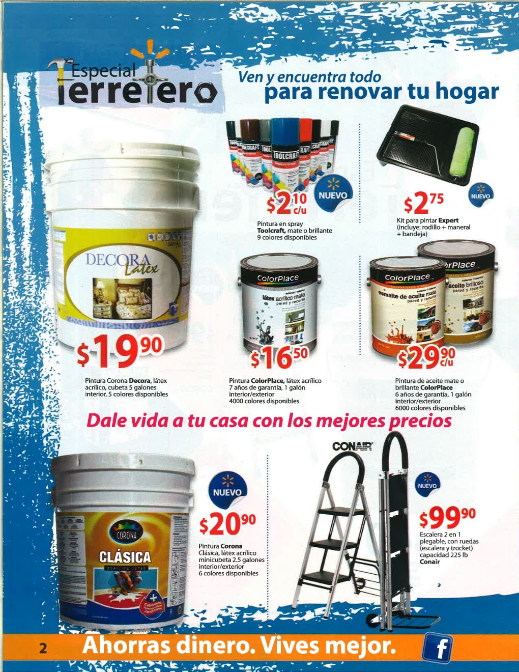 Decora, remodela y pinta tu casa con WALMART catalogo especial Ferretero (dic-14). Promociones validas del 22 de noviembre de 2014 al 25 de diciembre de 2014. Ahorras dineros vives mejor. Pinturas COLORPLACE, Escalera COSCO, luz espiral blanca SYLVANIA, Decora LATEX, expert accesories, toolcraft, corona pintura, conair, etc.